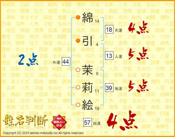 綿引茉莉絵さんの外運は44画の2点!