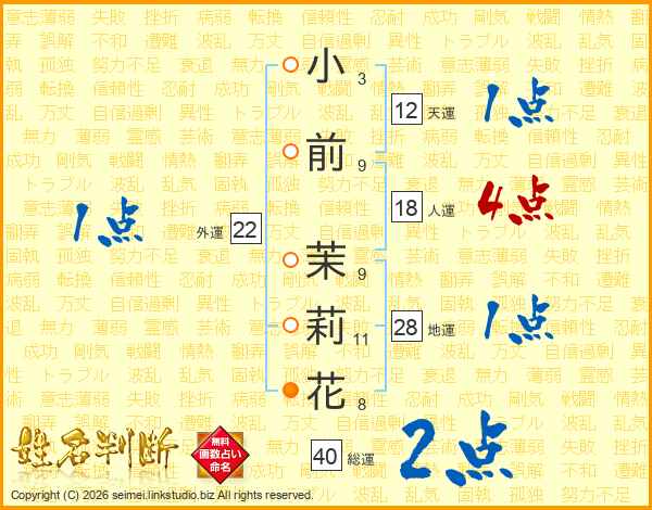 小(3画)前(9画) 茉(9画)莉(11画)花(8画)