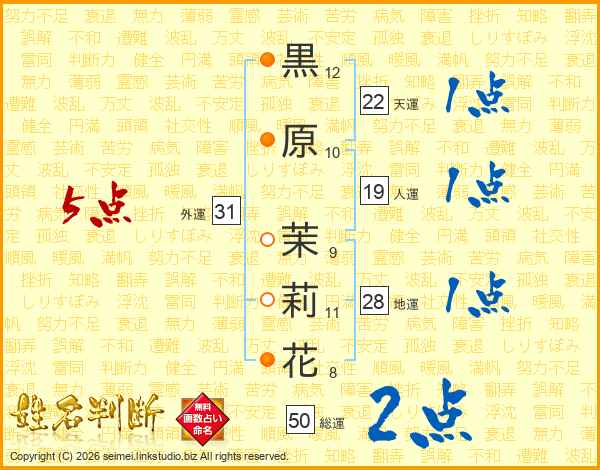 黒原茉莉花さんの総運は50画の2点!