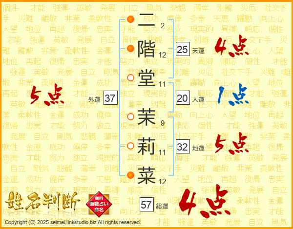 二階堂茉莉菜さんの外運は37画の5点!