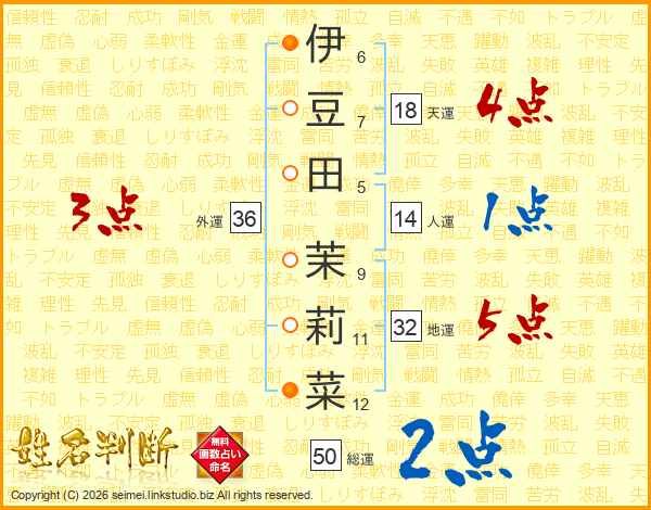 伊豆田茉莉菜さんの天運は18画の4点!