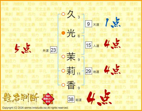 久光茉莉香さんの総運は38画の4点!