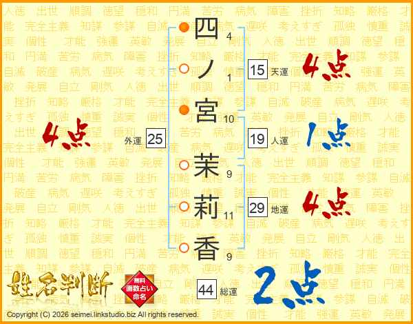 四ノ宮茉莉香さんの総運は44画の2点!