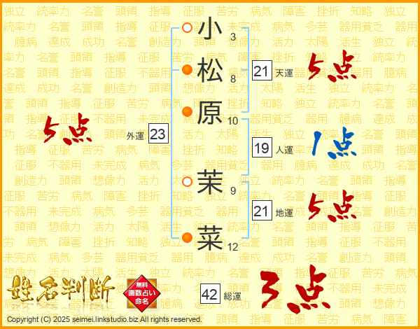 小(3画)松(8画)原(10画) 茉(9画)菜(12画)