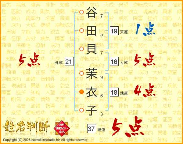 谷田貝茉衣子さんの総運は37画の5点!