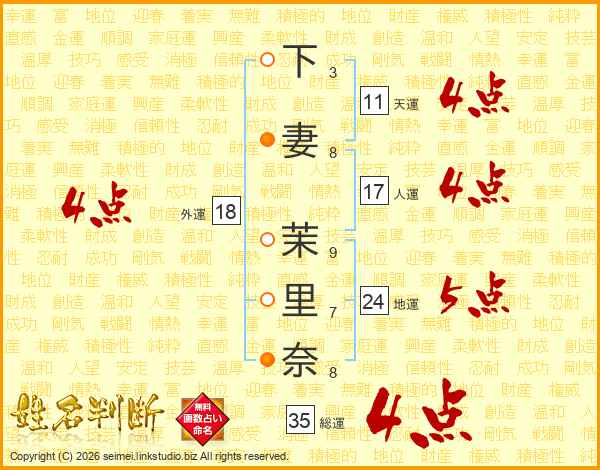 下妻茉里奈さんの天運は11画の4点!