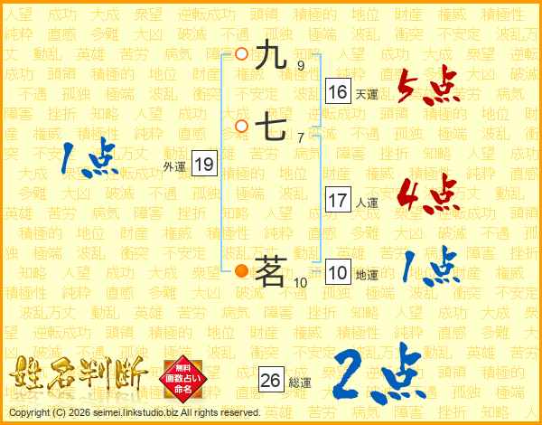 九七茗さんの総運は26画の2点!