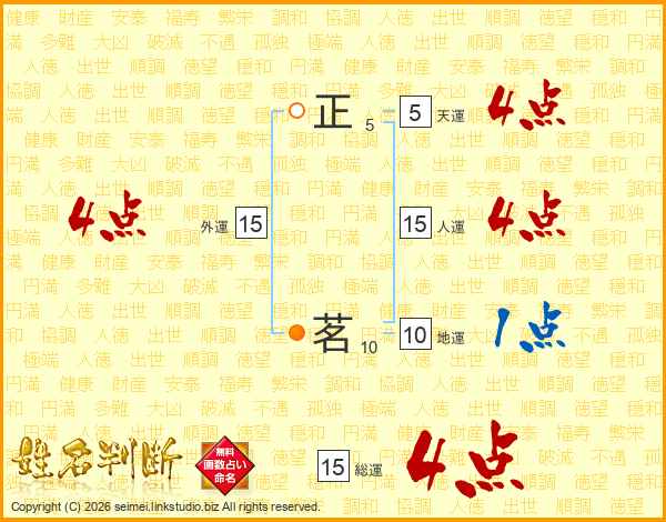 正茗さんの総運は15画の4点!