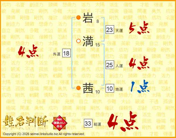 岩(8画)満(15画) 茜(10画)