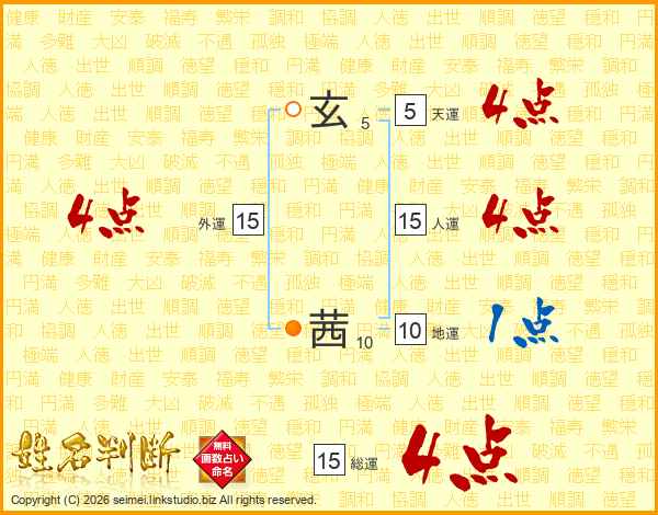 玄茜さんの外運は15画の4点!