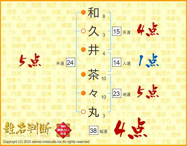 和(8画)久(3画)井(4画) 茶(10画)々(10画)丸(3画)