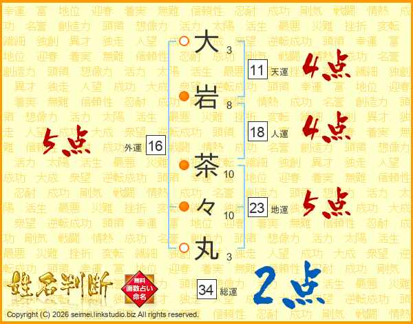 大岩茶々丸さんの総運は34画の2点!