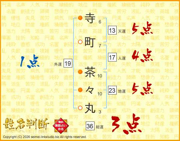 寺町茶々丸さんの天運は13画の5点!