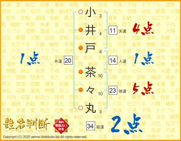 小井戸茶々丸さんの総運は34画の2点!