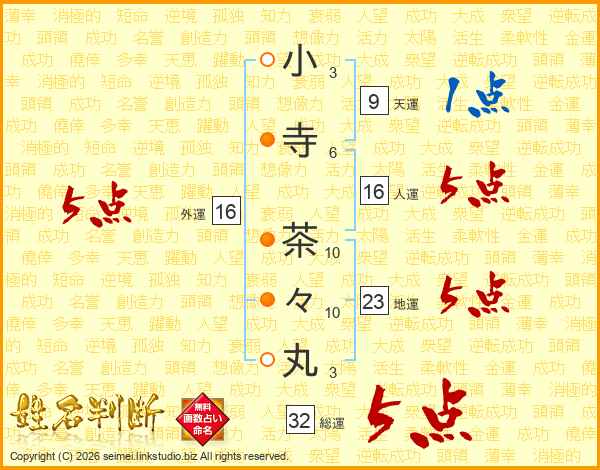 小寺茶々丸さんの総運は32画の5点!