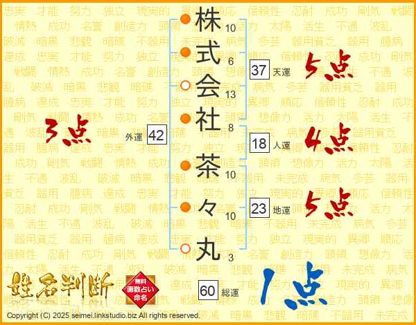 株(10画)式(6画)会(13画)社(8画) 茶(10画)々(10画)丸(3画)