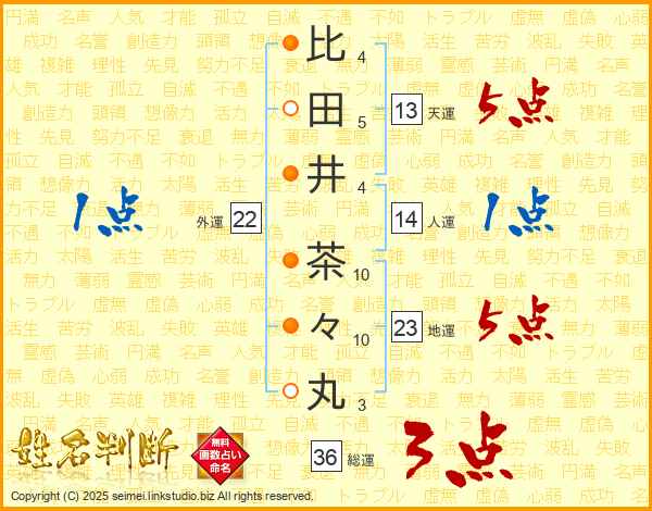 比(4画)田(5画)井(4画) 茶(10画)々(10画)丸(3画)