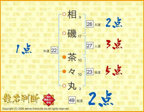 相磯茶々丸さんの総運は49画の2点!