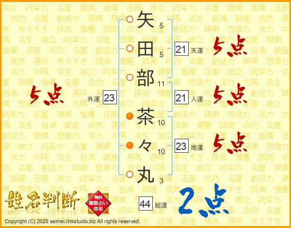 矢(5画)田(5画)部(11画) 茶(10画)々(10画)丸(3画)