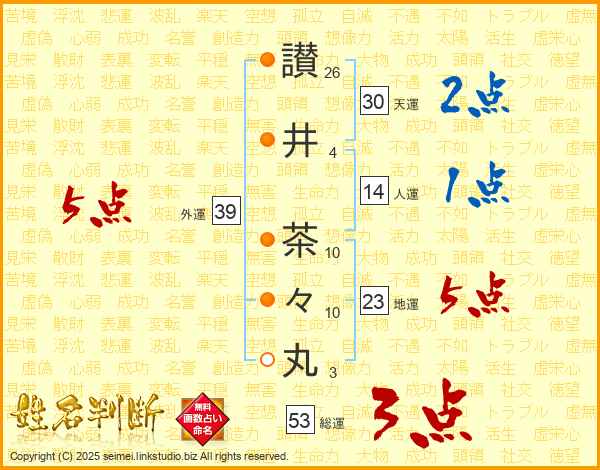 讃(26画)井(4画) 茶(10画)々(10画)丸(3画)