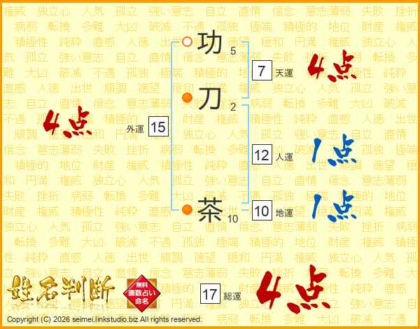 功刀茶さんの総運は17画の4点!