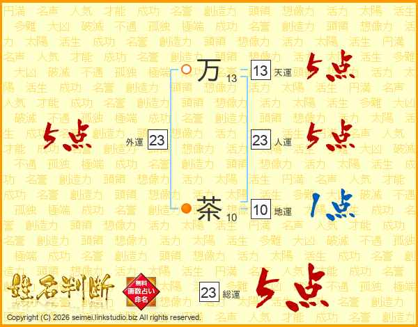万茶さんの総運は23画の5点!