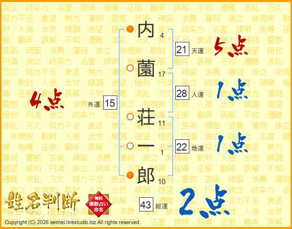内(4画)薗(17画) 荘(11画)一(1画)郎(10画)