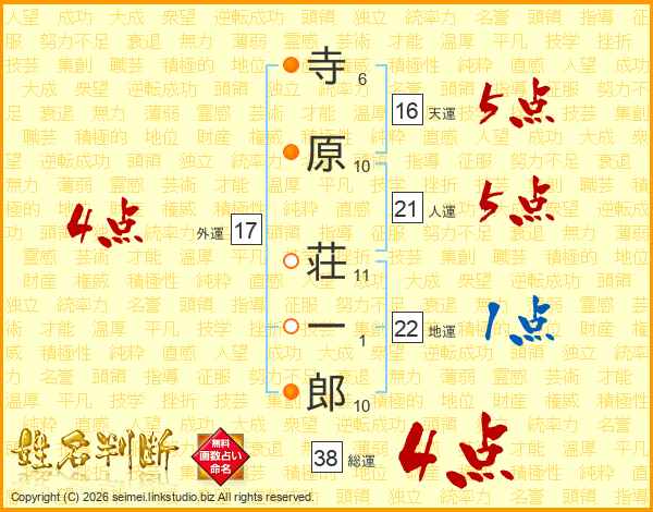 寺(6画)原(10画) 荘(11画)一(1画)郎(10画)
