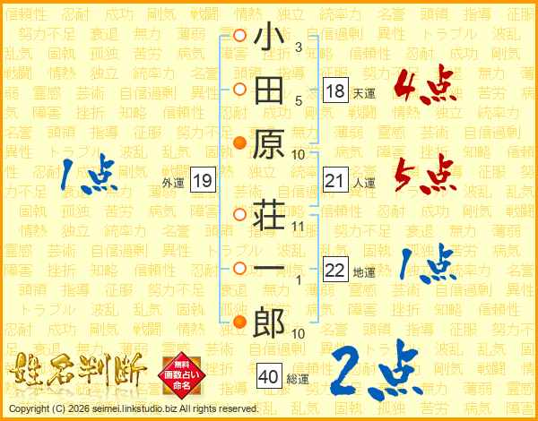 小田原荘一郎さんの人運は21画の5点!