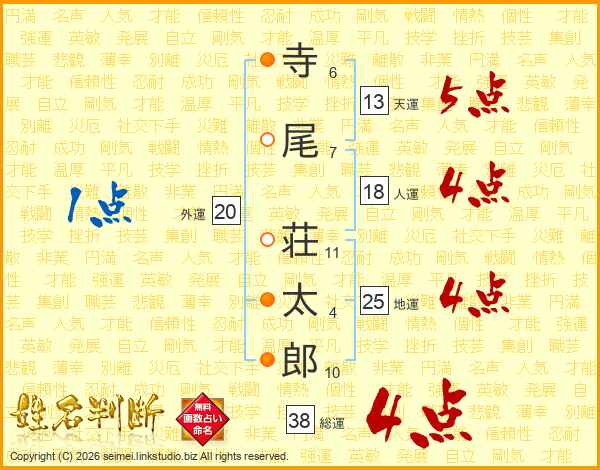 寺尾荘太郎さんの総運は38画の4点!