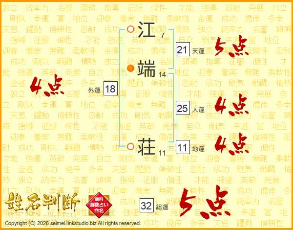 江端荘さんの総運は32画の5点!