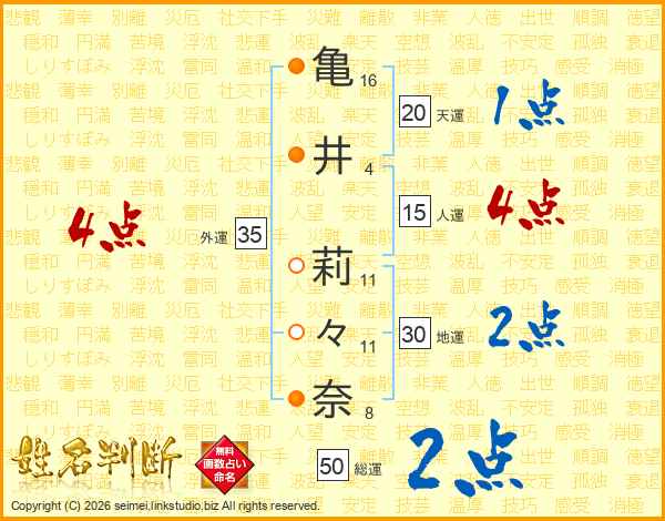 亀井莉々奈さんの外運は35画の4点!