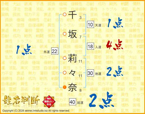 千坂莉々奈さんの総運は40画の2点!