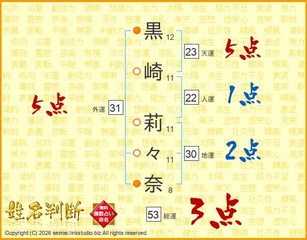 黒崎莉々奈さんの総運は53画の3点!