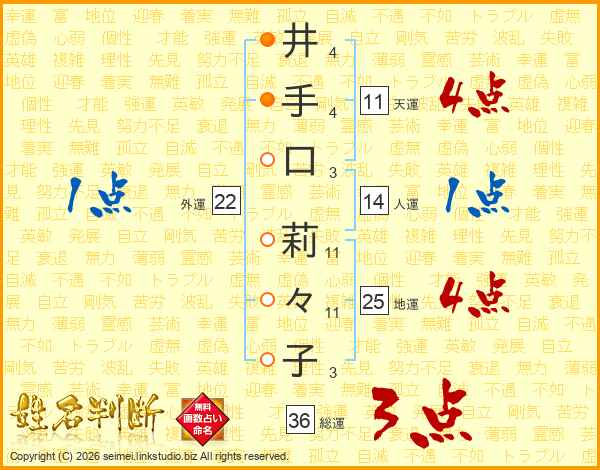 井手口莉々子さんの天運は11画の4点!