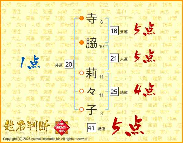 寺脇莉々子さんの総運は41画の5点!