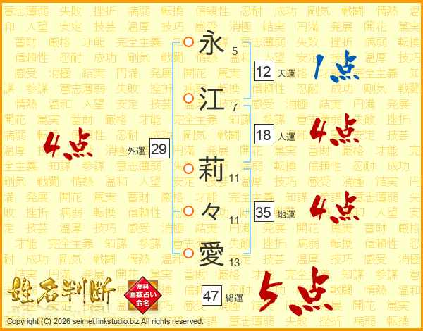 永江莉々愛さんの総運は47画の5点!