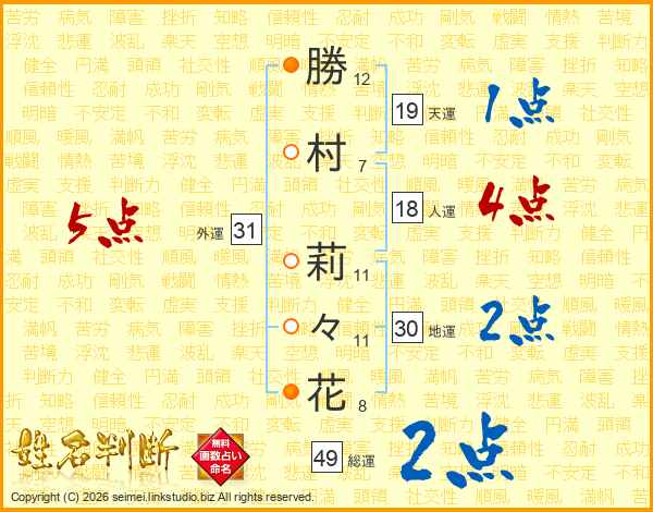 勝村莉々花さんの総運は49画の2点!