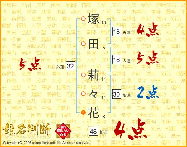 塚田莉々花さんの外運は32画の5点!