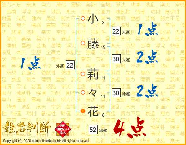 小藤莉々花さんの総運は52画の4点!