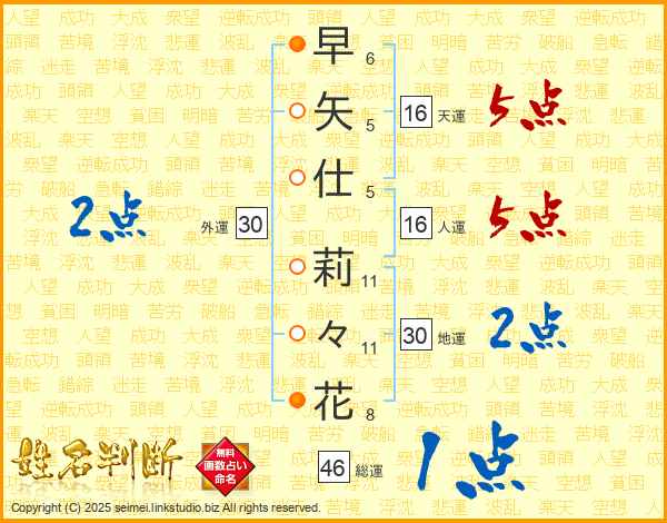 早矢仕莉々花さんの総運は46画の1点!