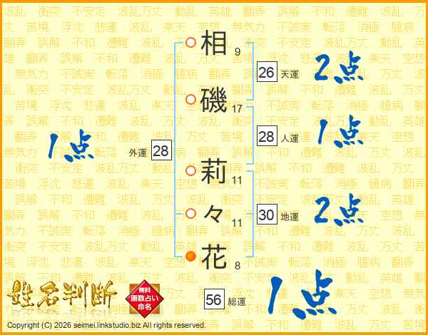 相磯莉々花さんの天運は26画の2点!