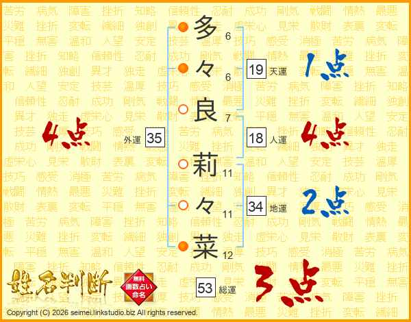 多々良莉々菜さんの総運は53画の3点!