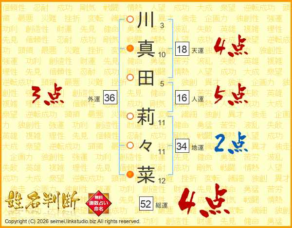 川真田莉々菜さんの総運は52画の4点!