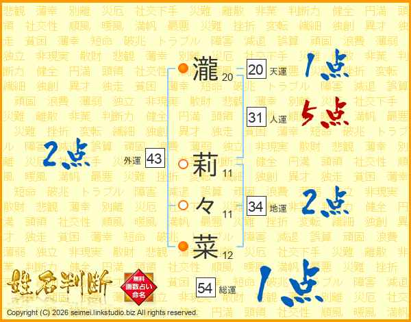 瀧莉々菜さんの総運は54画の1点!