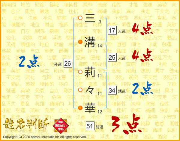 三溝莉々華さんの人運は25画の4点!