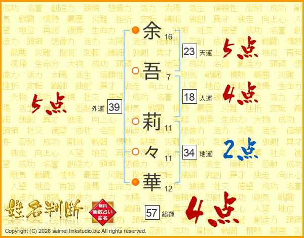 余吾莉々華さんの外運は39画の5点!