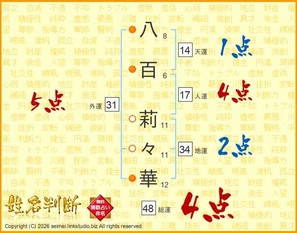 八百莉々華さんの総運は48画の4点!