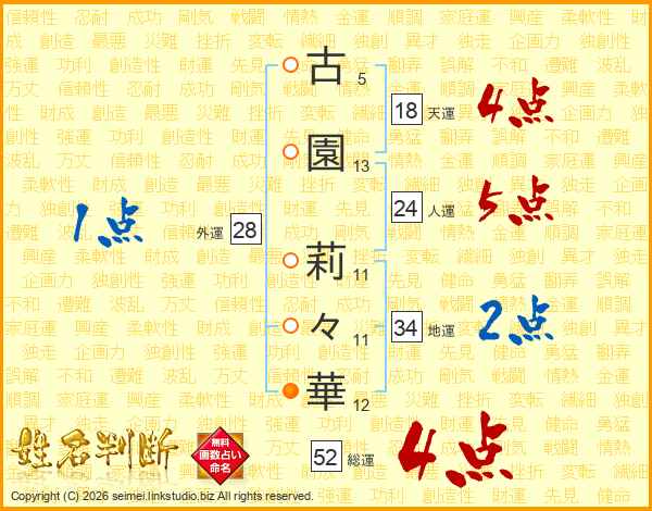 古園莉々華さんの総運は52画の4点!