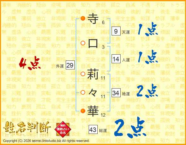 寺口莉々華さんの外運は29画の4点!